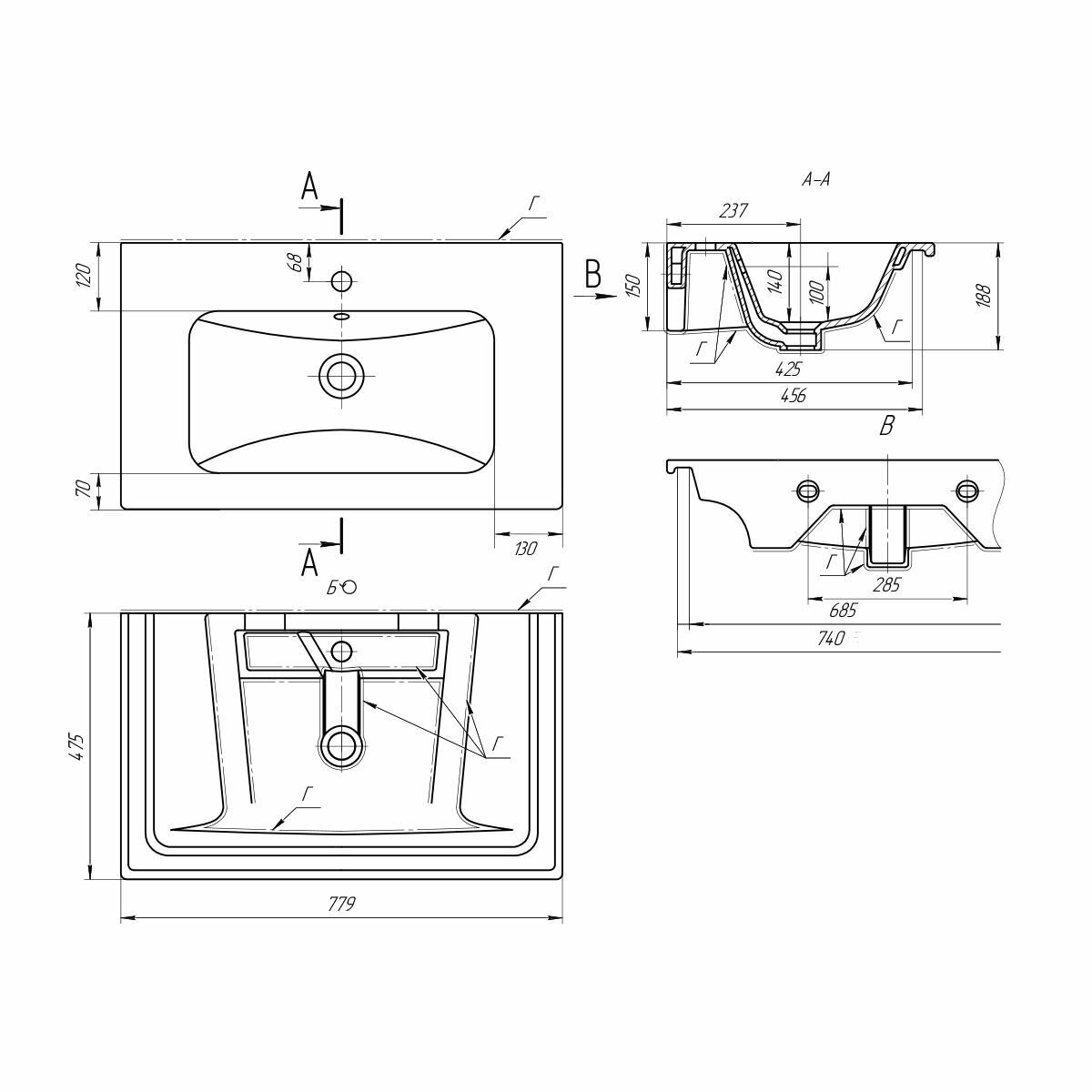| Отверстие под перелив | есть |