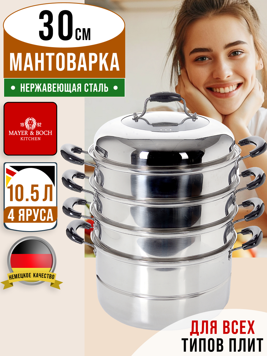 Мантоварка 4-ярусная 30 см MAYER&BOCH 21464 интересное: