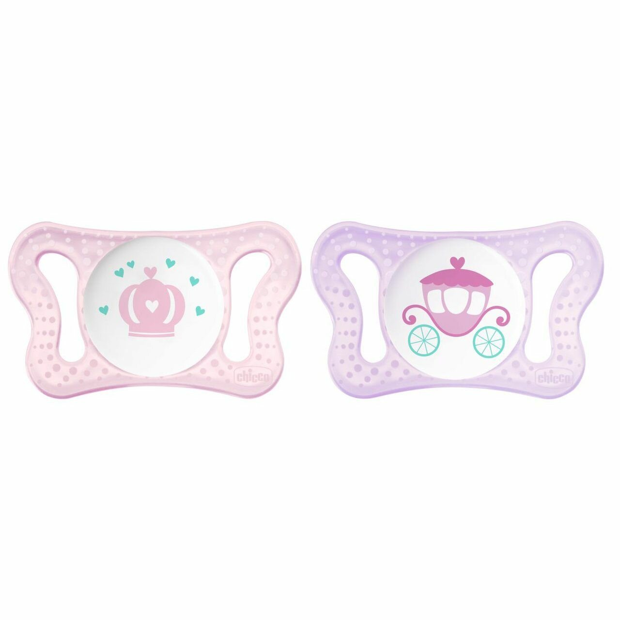 Пустышка силиконовая Chicco MICRO, 2шт., 0-2 мес., для принцессы, рисунок корона