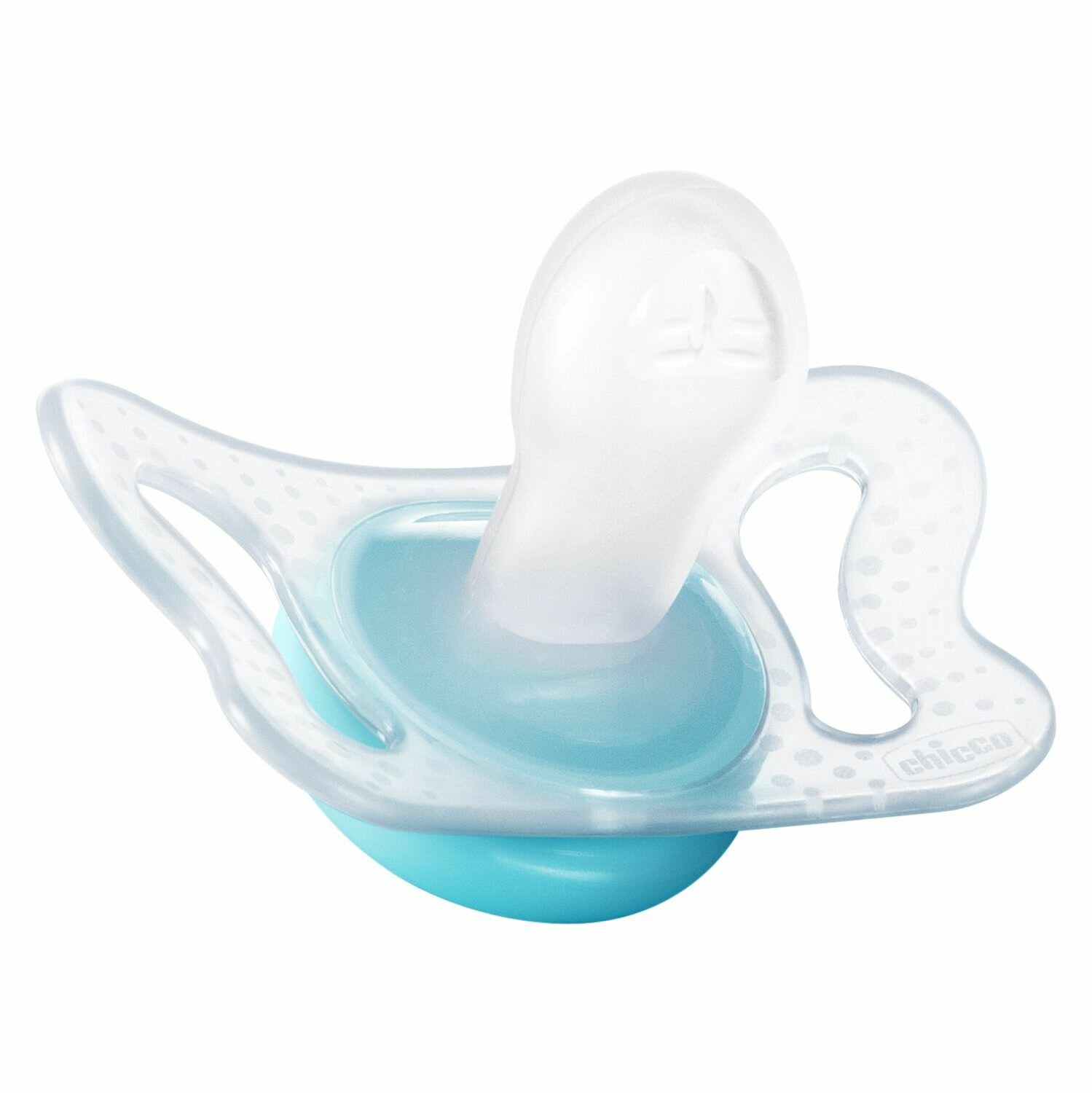 Соска пустышка для новорожденных силиконовая CHICCO MICRO, 2шт., 0-2 мес., голубая, рис. нейтральный, сердечки
