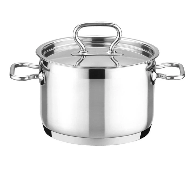Каждая ручка сварена в восьми местах точечной сваркой. Металлическая крышка. Ручки не нагреваются. Подходит для всех видов плит. |