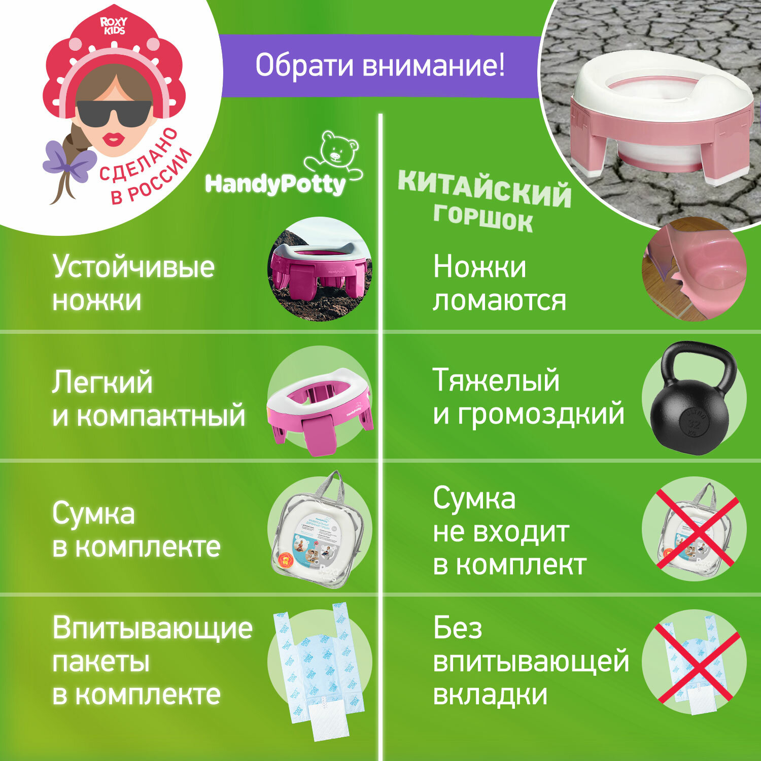 Горшок дорожный складной и насадка на унитаз HandyPotty от ROXY-KIDS с тремя пакетами, цвет розовый