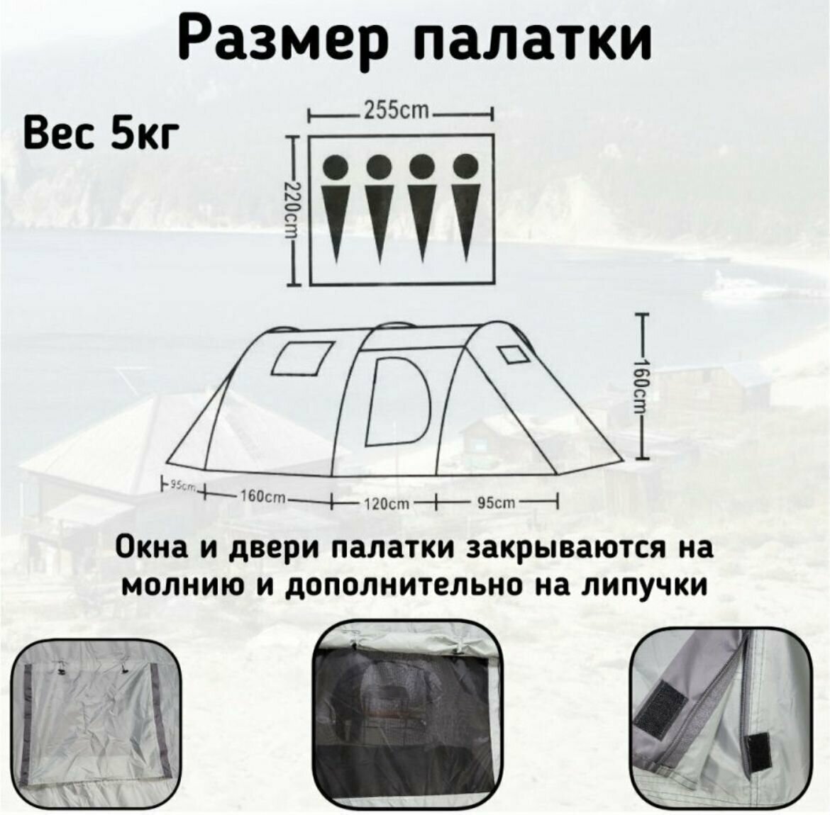 Палатка туристическая 4 местная с тамбуром Lanyu -1909, серый
