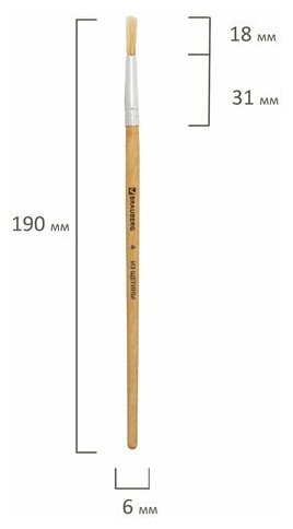 Комплект 100 шт, Кисть BRAUBERG, щетина, круглая, № 4, 200195 интересное: