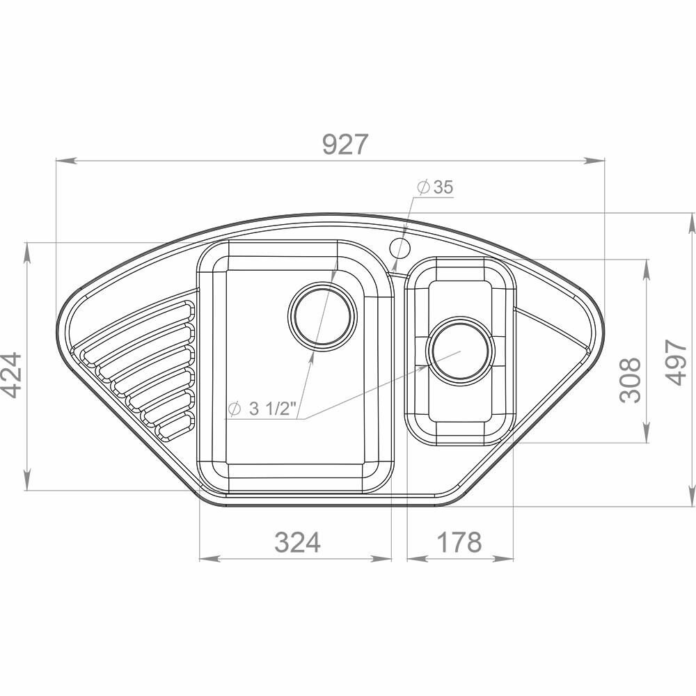| Диаметр сливного отверстия | 3 1/2 " |