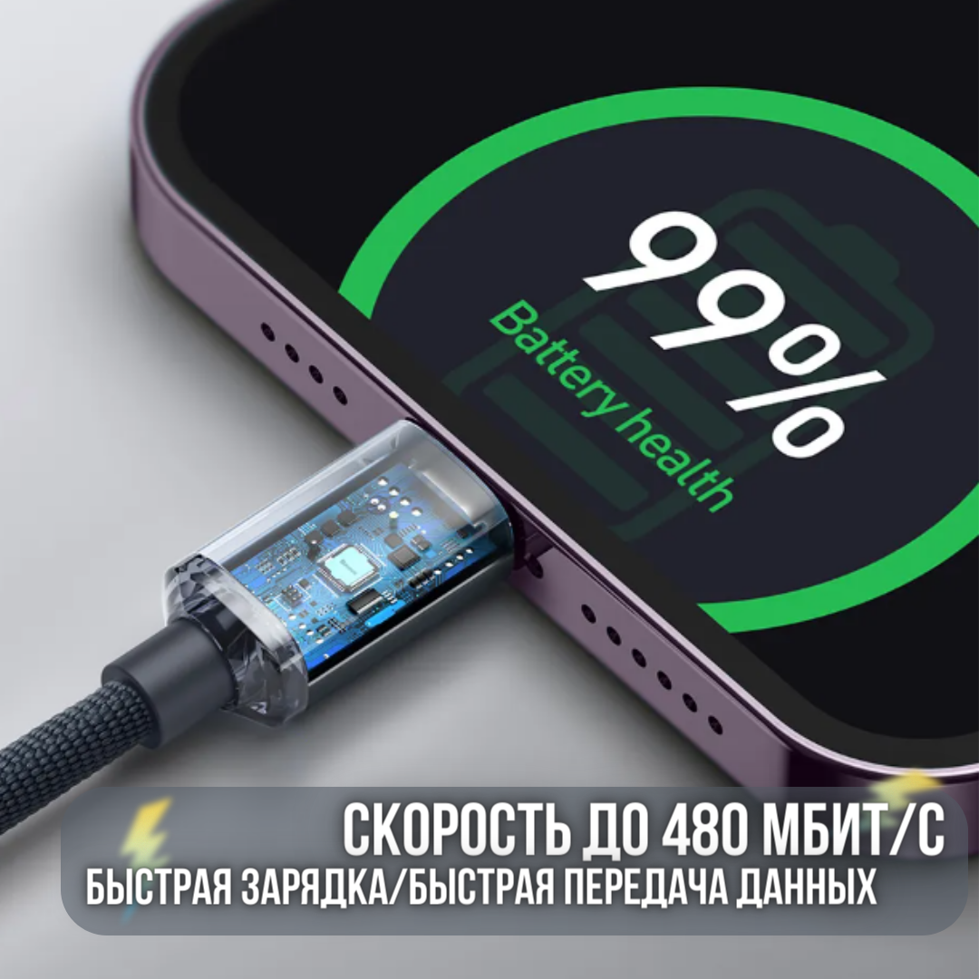 СохранитьЗарядный кабель Baseus Crystal Shine - USB Type-C (m) - Lightning (m) - 1,2 метра - черный (CAJY000201) интересное: