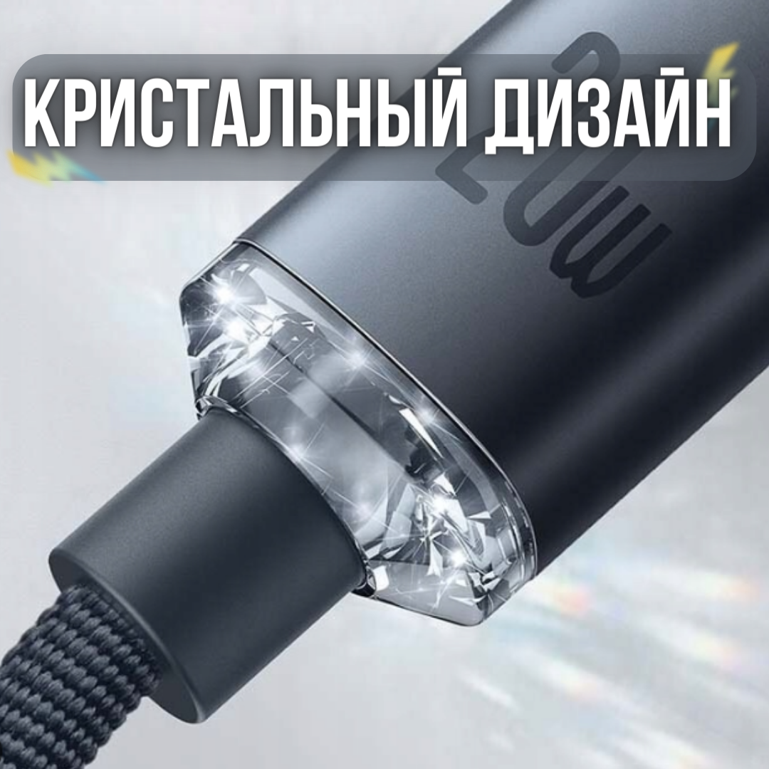 Кабель для айфона Baseus Crystal Shine Type-C - Lightning PD 20 Вт 2 метра (CAJY000301) - Черный