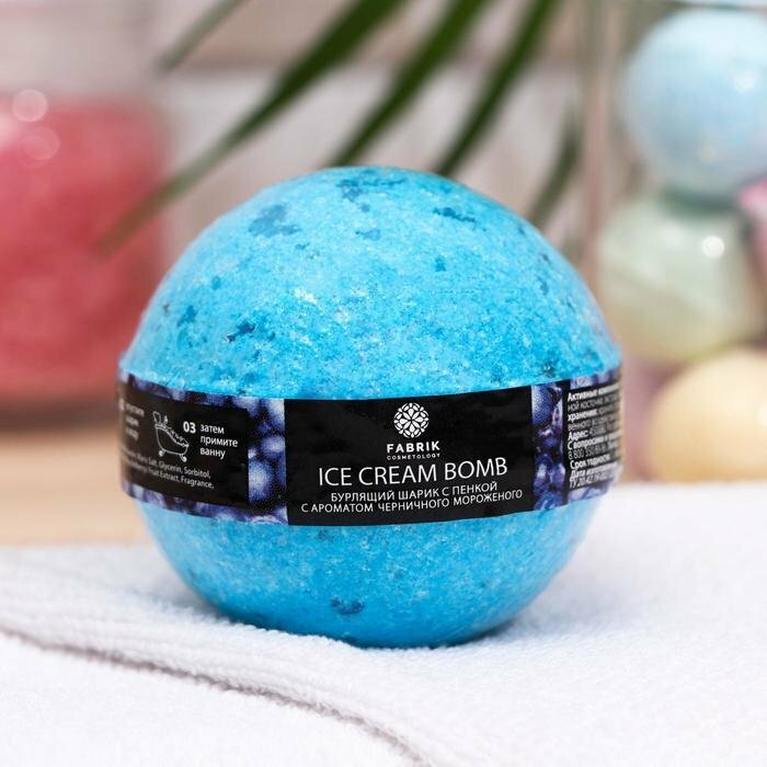 Бомбочка для ванн «Черничное мороженое» Fabrik Cosmetology, 120 г (комплект из 16 шт) интересное: