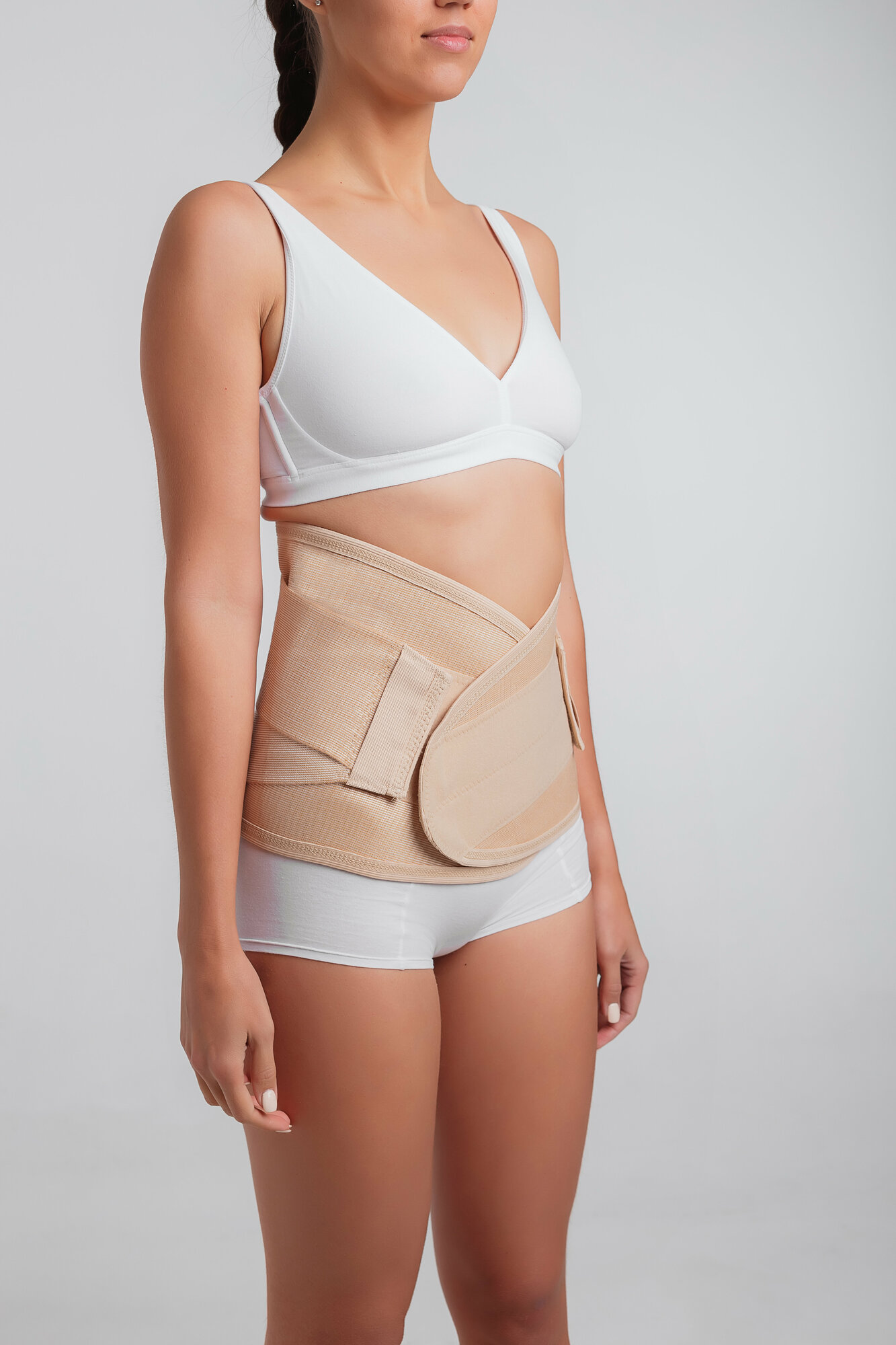 Бандаж брюшной поддерживающий усиленный / Пояс для спины / Корсет ортопедический поясничный. Бежевый, 1 размер.