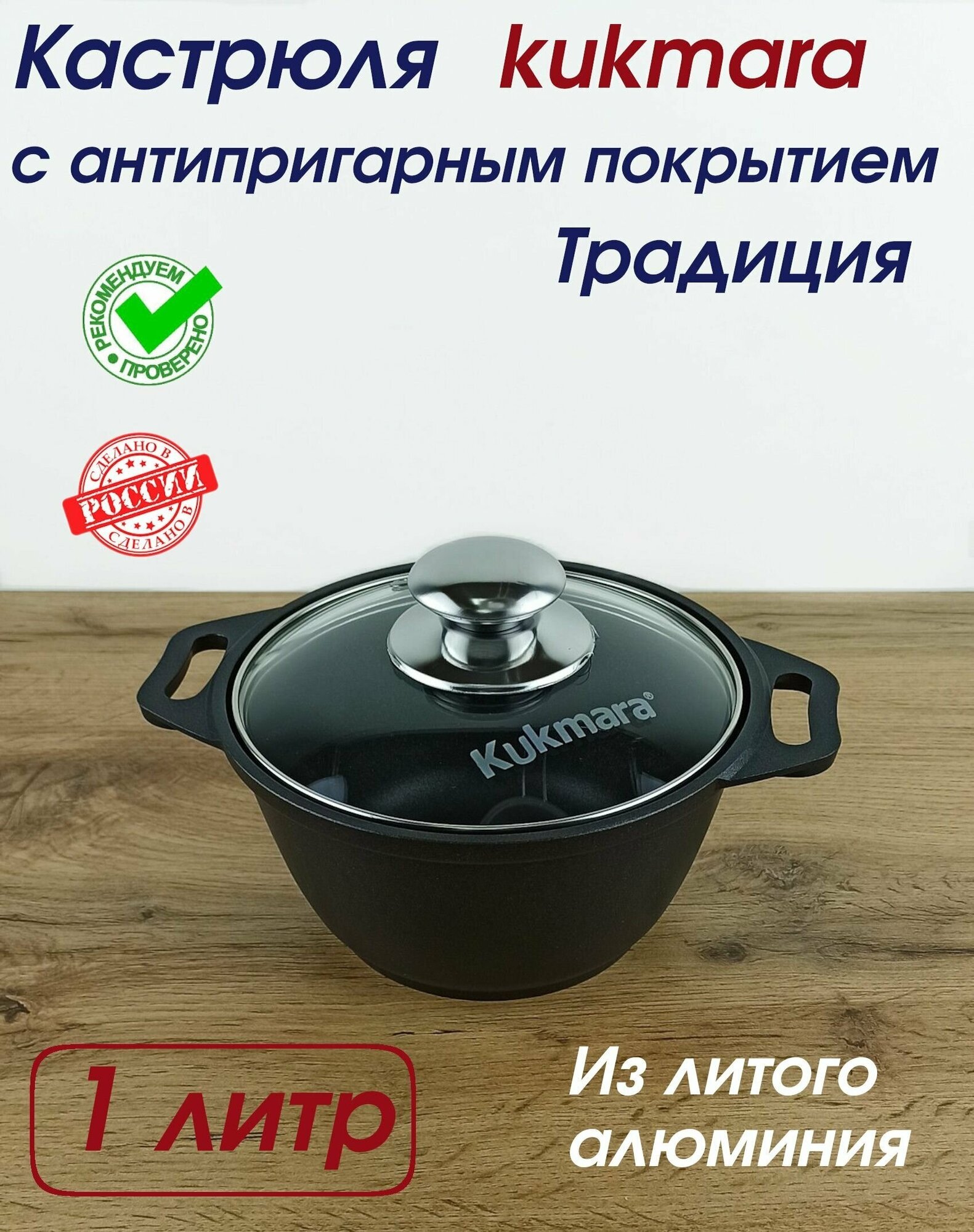 Кастрюля Kukmara с антипригарным покрытием 1 литр, с крышкой, линия "традиция"