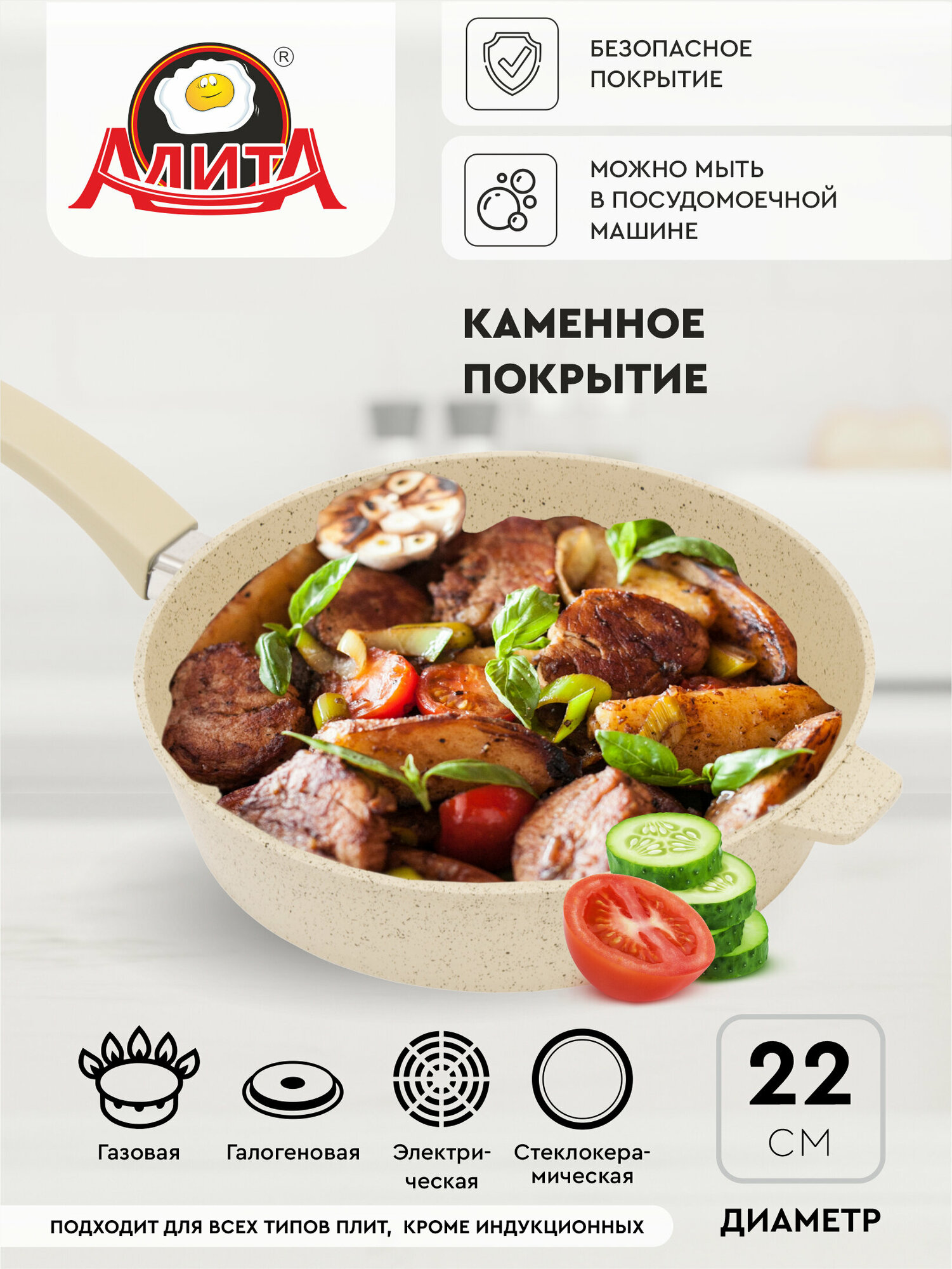 Сковорода антипригарная 22 см глубокая литая алюминиевая с покрытием, Природный камень