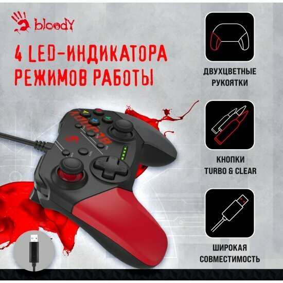 Геймпад проводной A4TECH Bloody GP30 Sports черный [gp30 sports red]