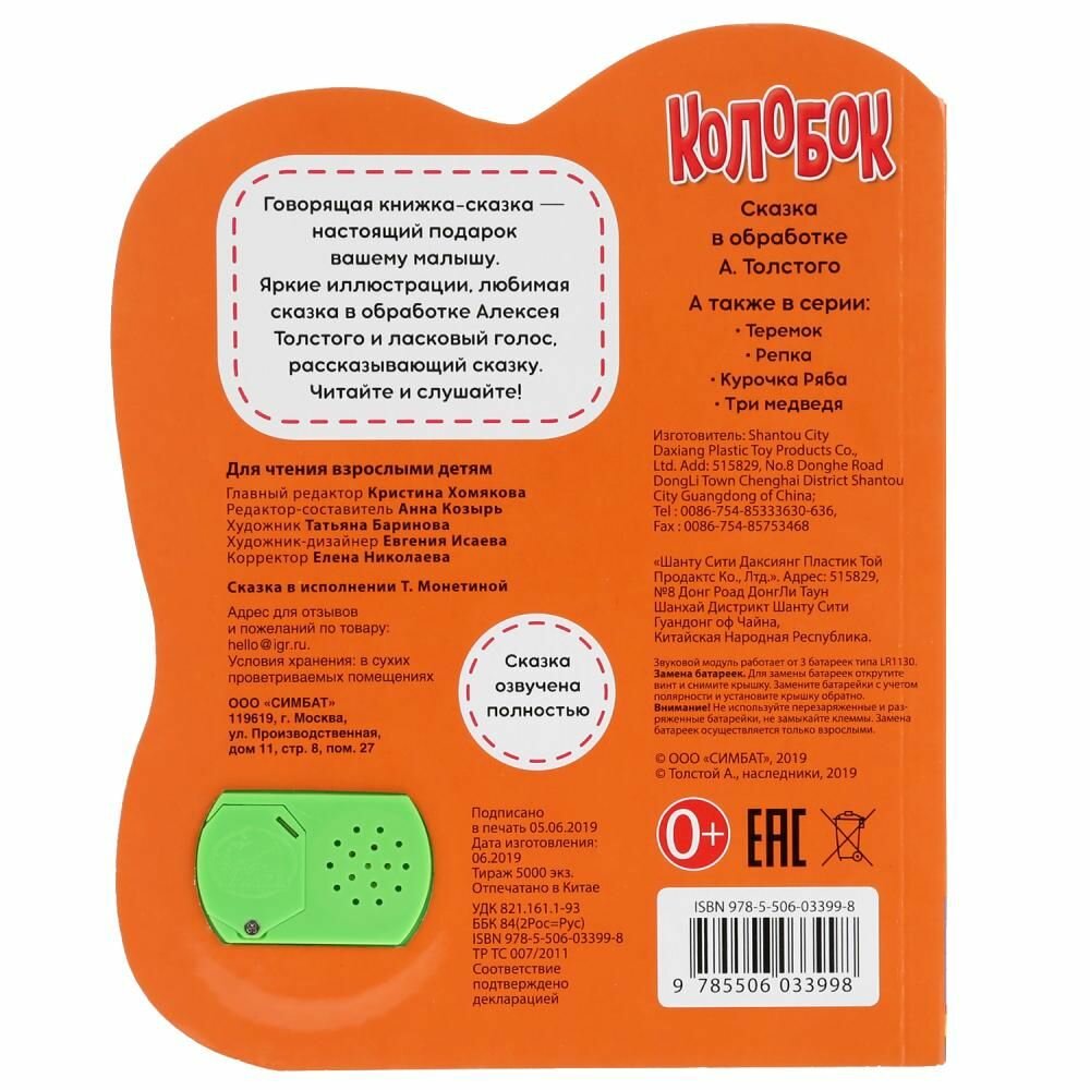 Колобок. Говорящая сказка (1 кнопка 5 нажатий). . Толстой А.Н. интересное: