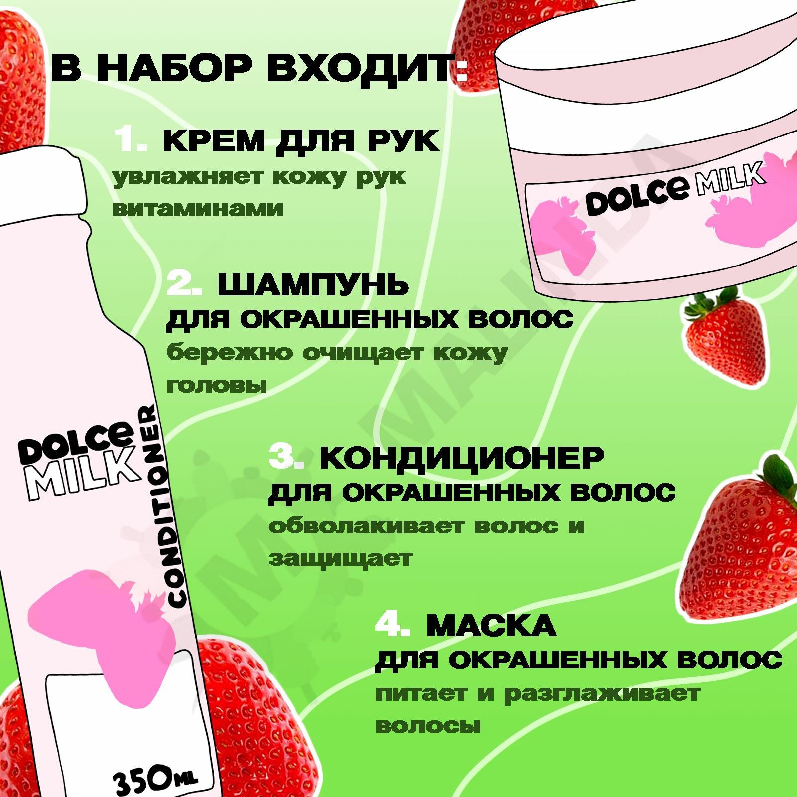 DOLCE MILK Набор косметики № 10 Мисс Клубничный компромисс: Шампунь, Кондиционер, Маска, Крем для рук интересное: