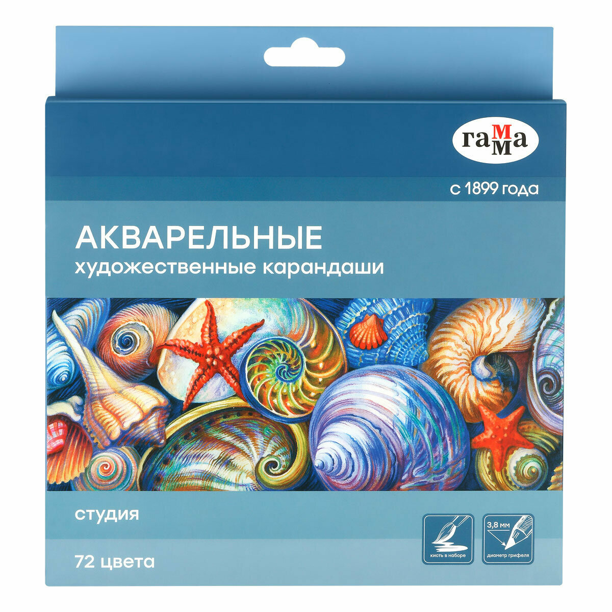 Карандаши акварельные художественные 72 цвета Гамма "Студия" (L=175мм, d=3.8мм, 6гр) картон. упаковка (110822_72)