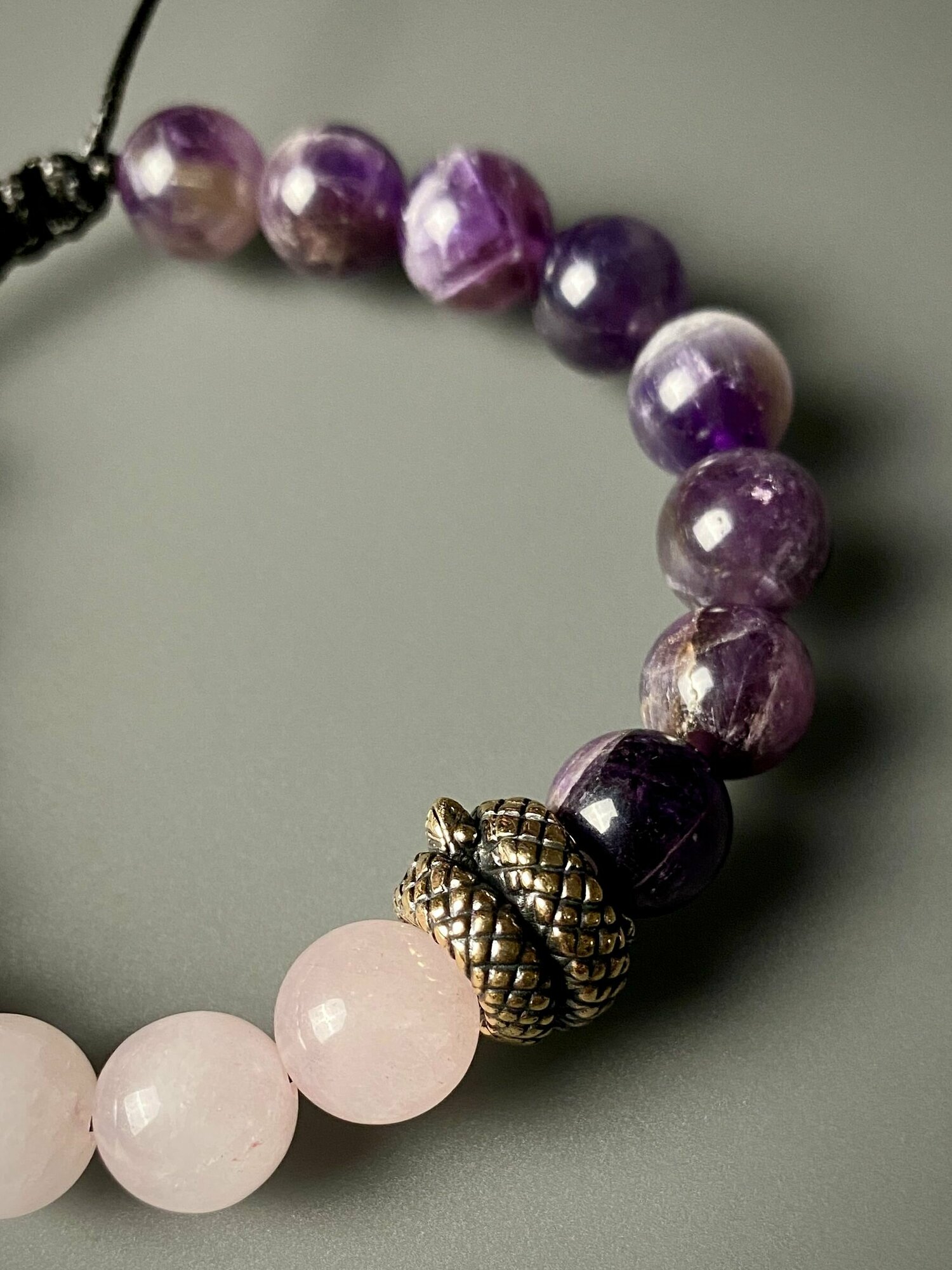 Браслет змея из натуральных камней аметист и кварц, плетеный шамбала