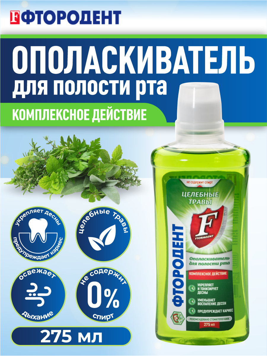 Ополаскиватель для полости рта Фтородент Целебные травы 275 мл х 4 шт.