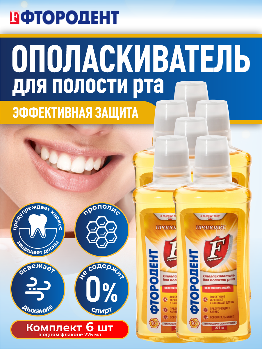 СохранитьОполаскиватель для полости рта Фтородент Прополис 275 мл х 6 шт. интересное: