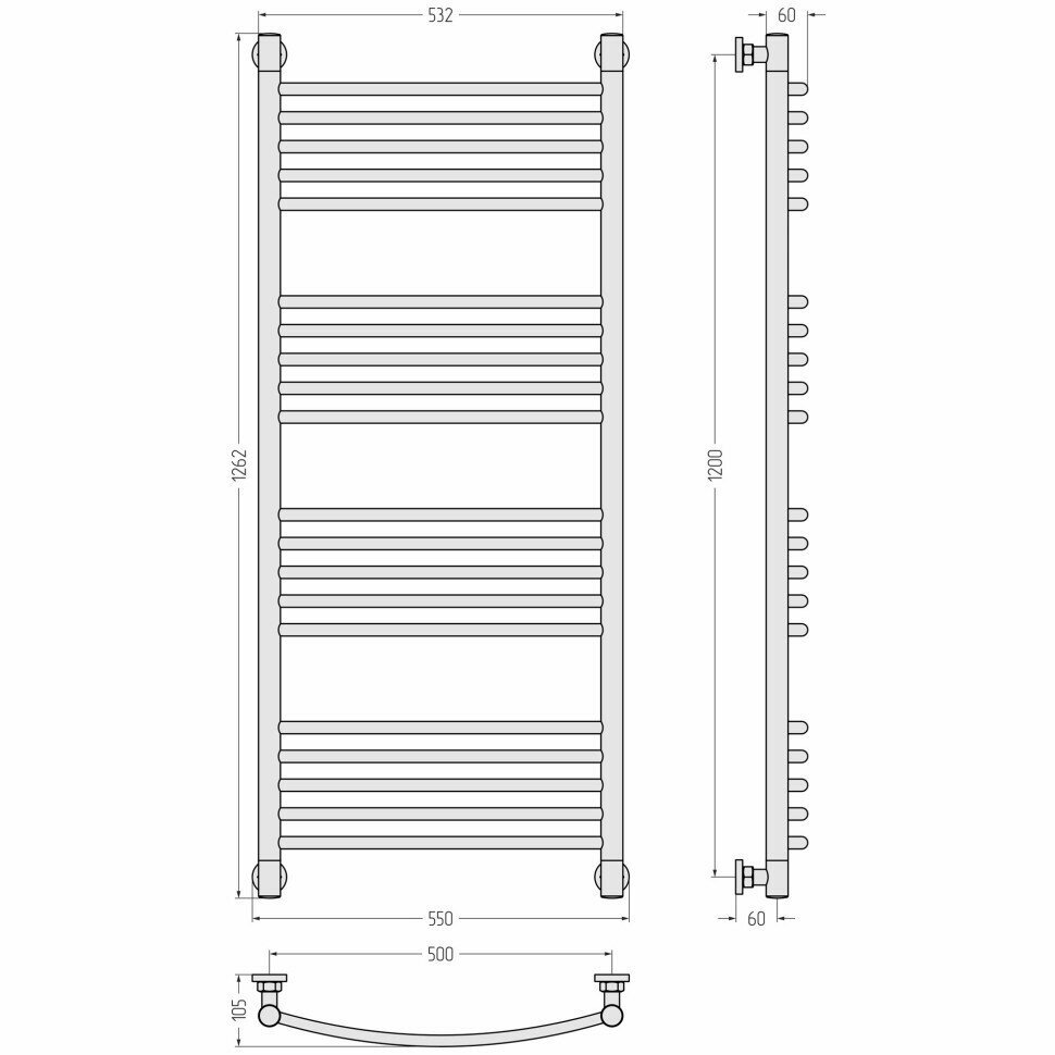 Полотенцесушитель водяной Сунержа Богема+ выгнутая 1200x500 00-0221-1250
