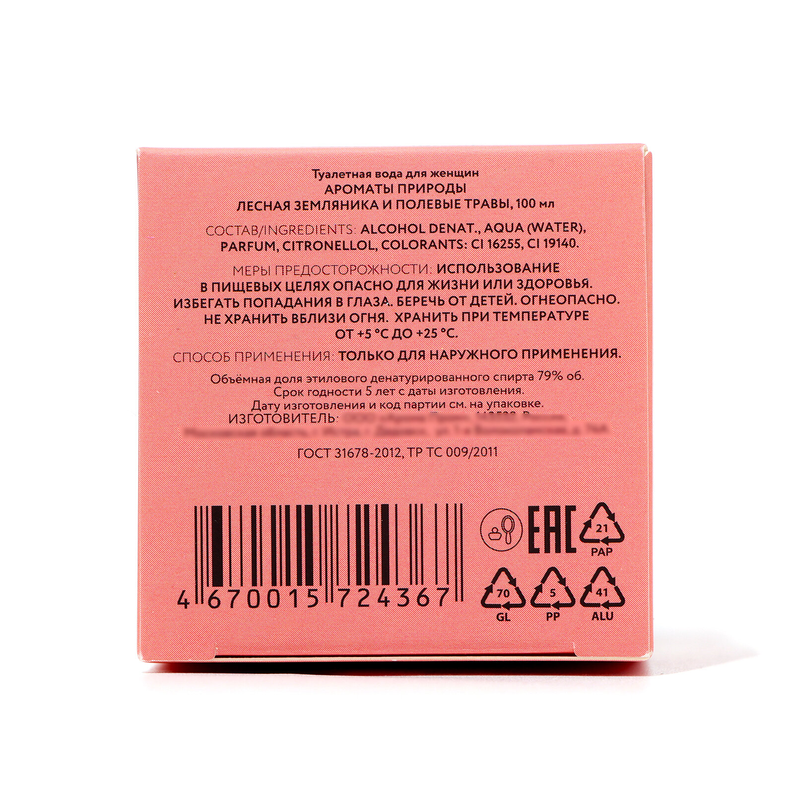 Туалетная вода Ароматы Природы "Лесная Земляника и Полевые Травы", 100 мл