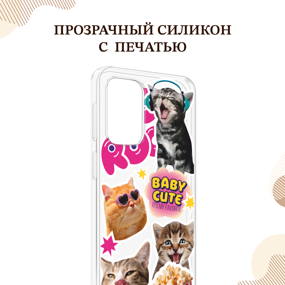 Купить Чехол на OnePlus 11 / Ван Плас 11 с принтом Popcorn cats, прозрачный