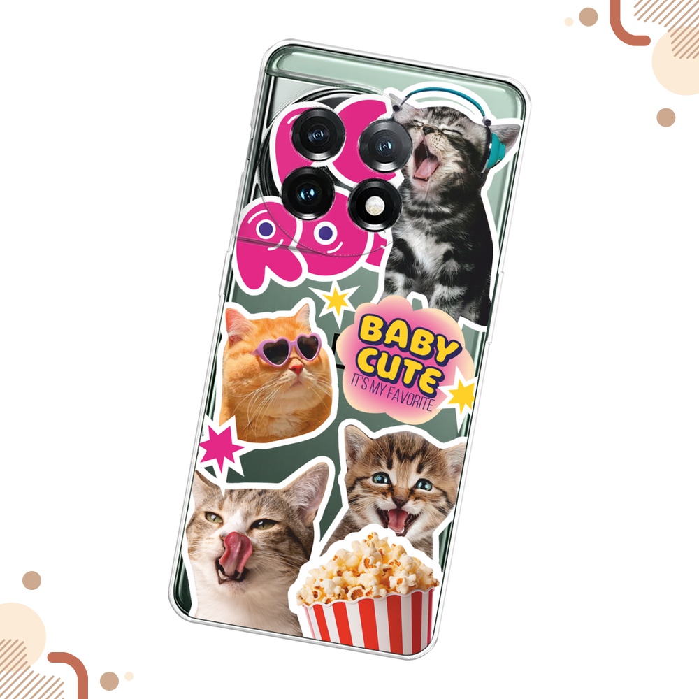 Силиконовый чехол "Милые котики" на OnePlus 11 / Ван Плас 11, прозрачный