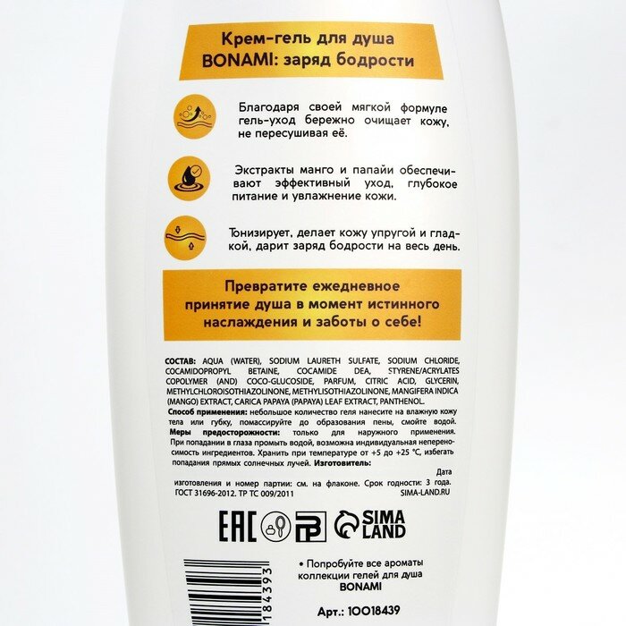 Гель для душа, заряд бодрости, 750 мл, аромат экзотических фруктов, BONAMI интересное: