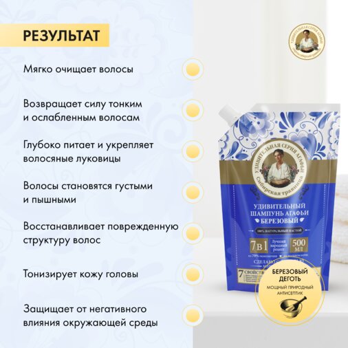 Удивительная Серия Агафьи шампунь Березовый 500мл Дой-пак