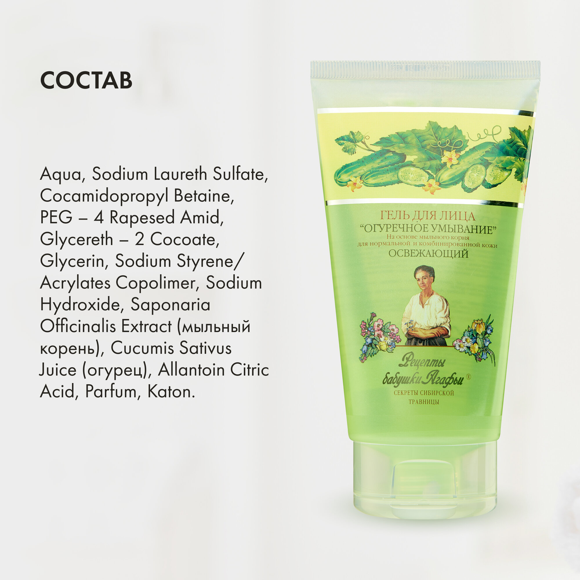 Гель для умывания Рецепты бабушки Агафьи Освежающий, для нормальной комбинированной кожи, 150 мл