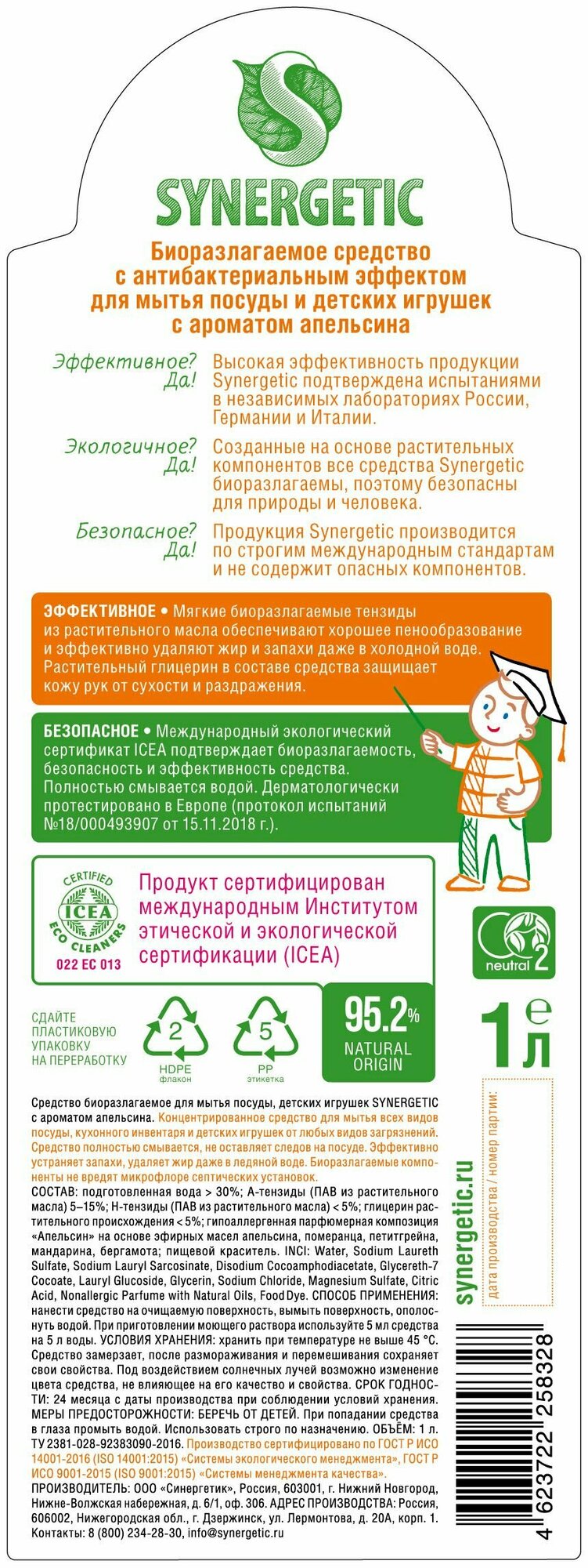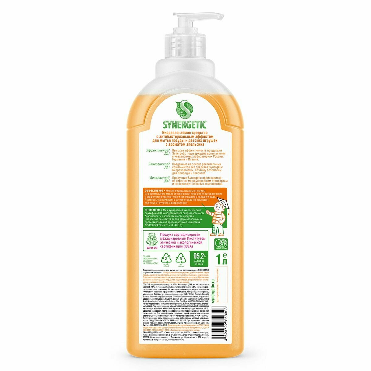 Гель для мытья посуды Synergetic Апельсин, биоразлагаемый 1л 4623722258328