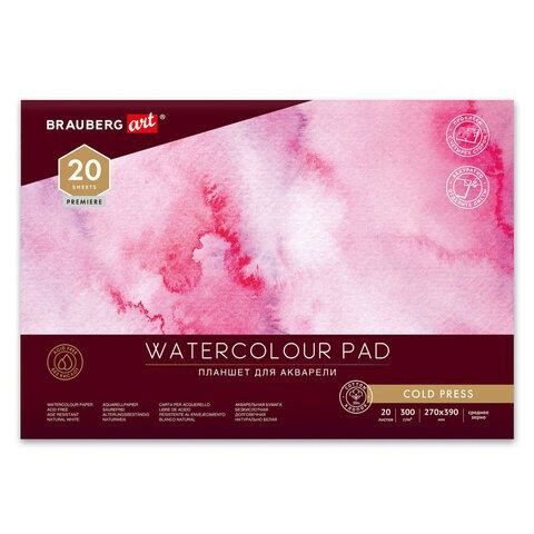 СохранитьПланшет для акварели хлопок 30%, 300 г, 270х390 мм, склейка, 4 стороны, среднее зерно, 20 л., BRAUBERG ART, 113252 интересное: