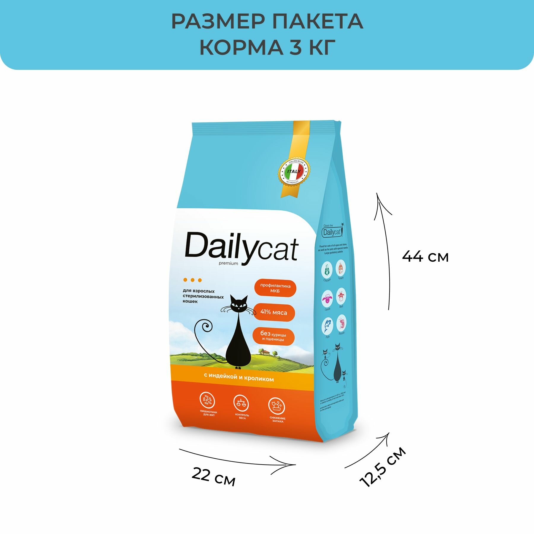 Купить Сухой корм Dailycat для стерилизованных кошек и кастрированных котов, с индейкой и кроликом, 3 кг