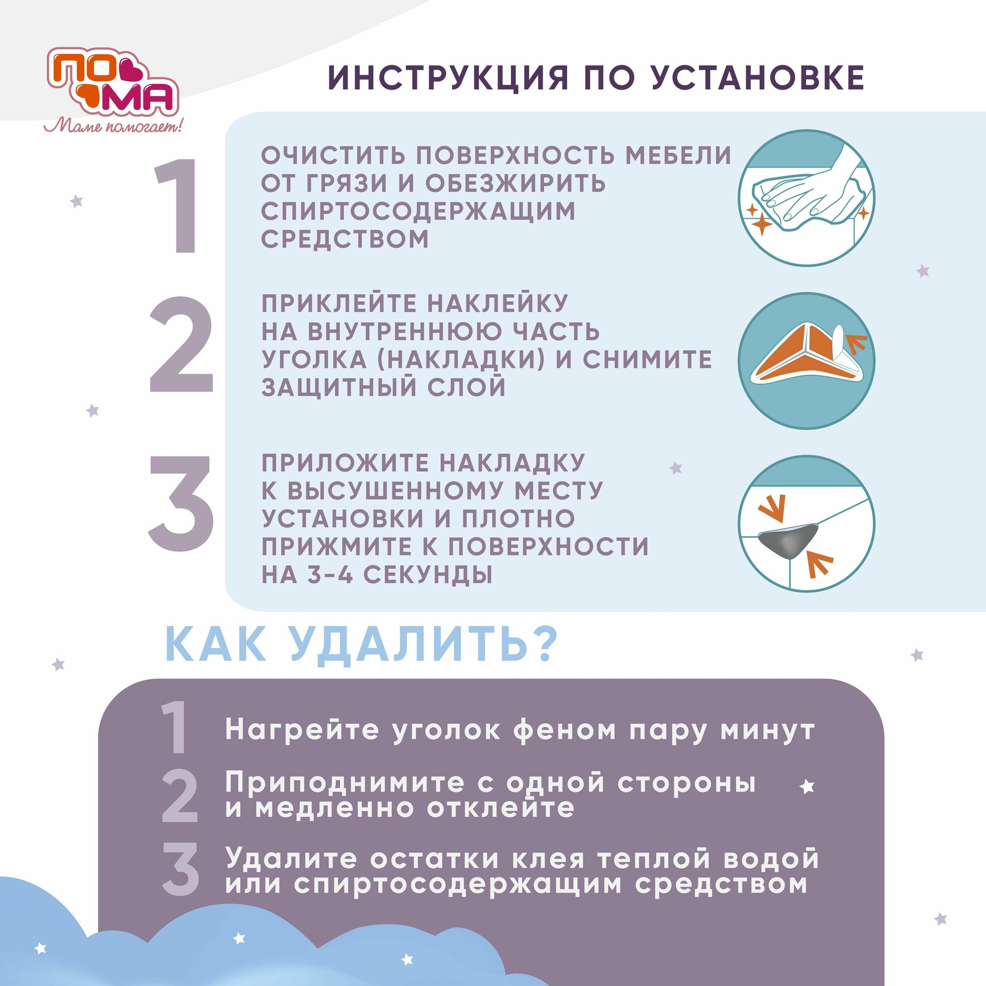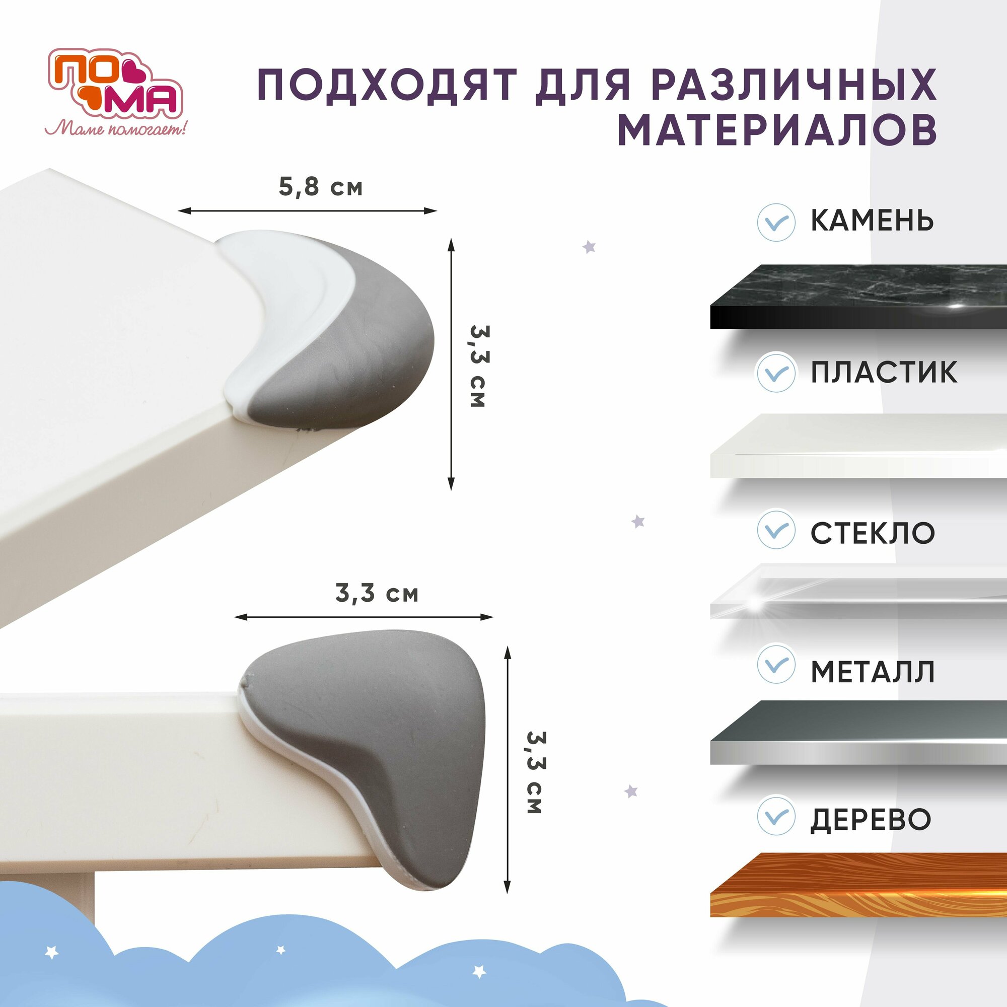 Накладки на углы, 4 шт. (ПВХ) с дополнительным набором наклеек