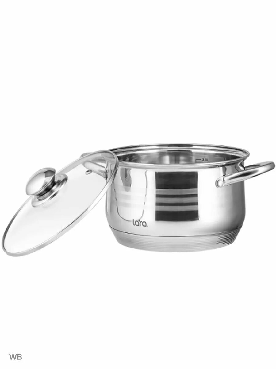 Кастрюля из нержавеющей стали 3.9л LARA LR02-582/ серия SONATA для всех видов плит, для индукционных, крышка