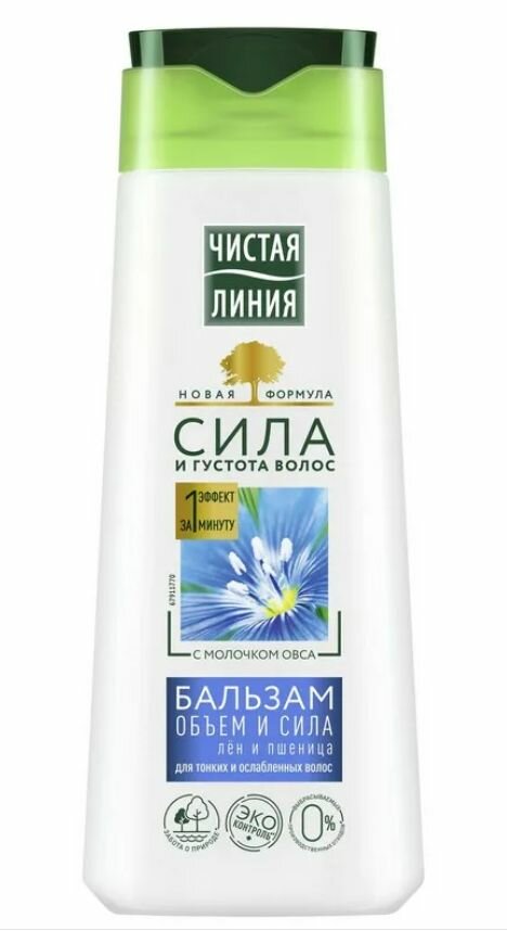 Бальзам-ополаскиватель для волос Чистая Линия Объем и сила для тонких волос с экстрактами льна и пшеницы 380мл