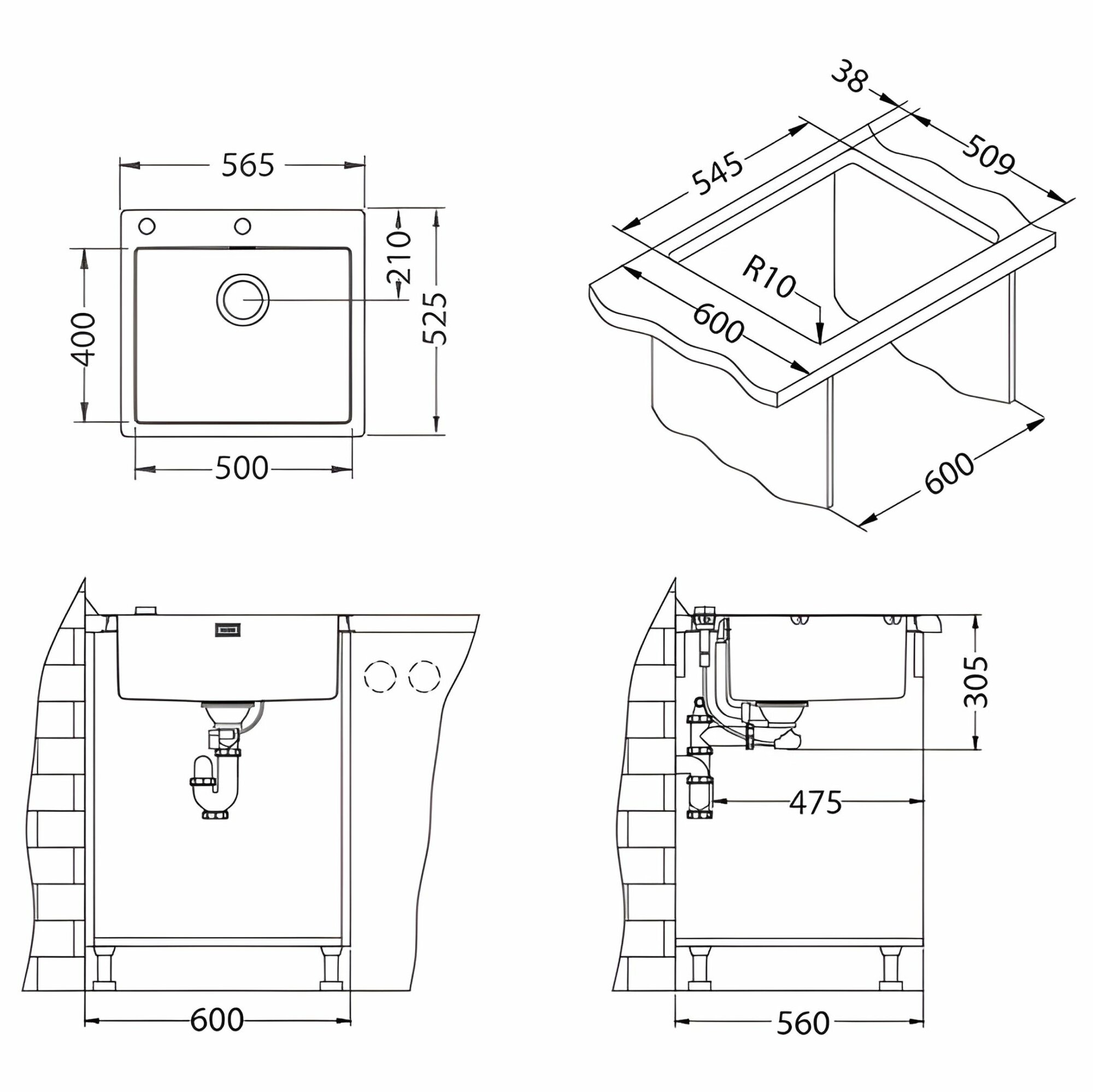 Мойка для кухни врезная нержавеющая сталь PURE 70 KMB-90 565X525 в комплекте с сифоном. Цвет серый металлик