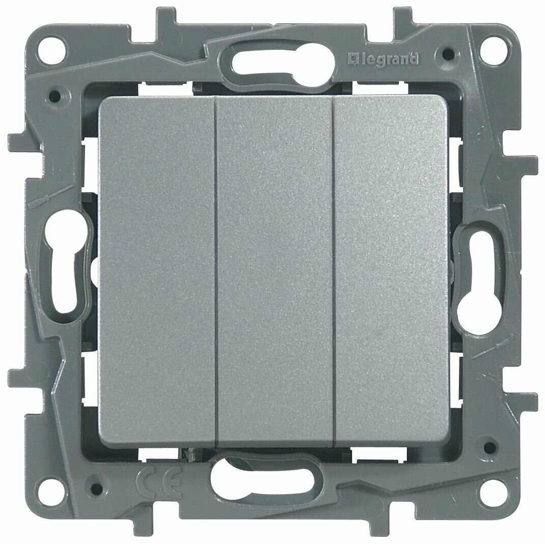 Купить Выключатель трехклавишный (Алюминий) 10А, 250В, Legrand Etika (комплект 3шт)