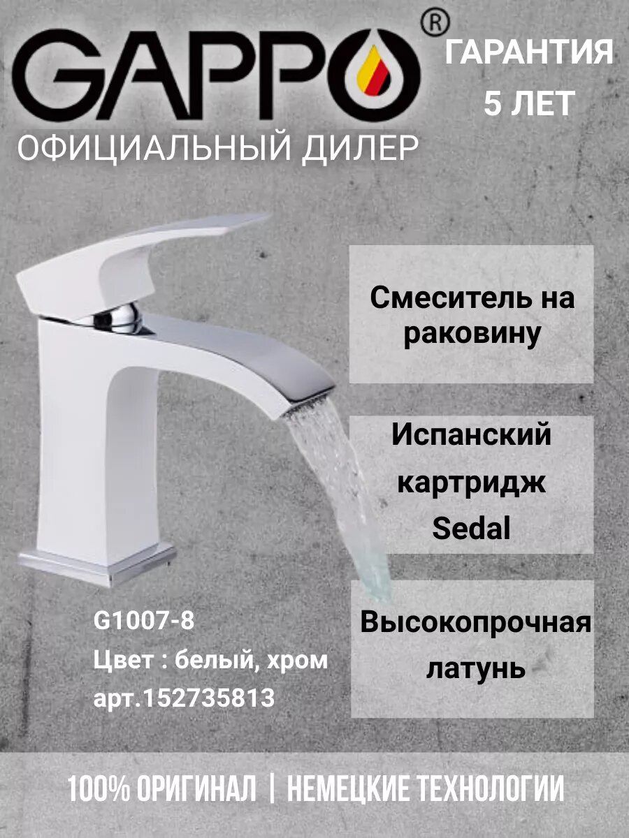 G1007-8 Смеситель для раковины, белый/хром - GAPPO