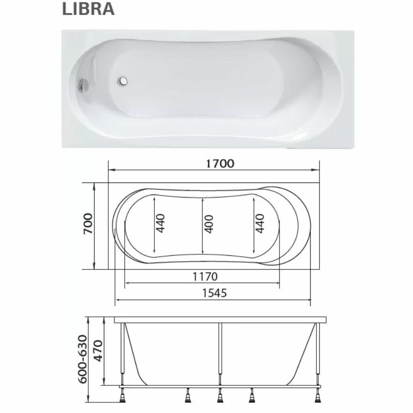 Акриловая ванна 170х70 см Marka One Libra 01ли1770