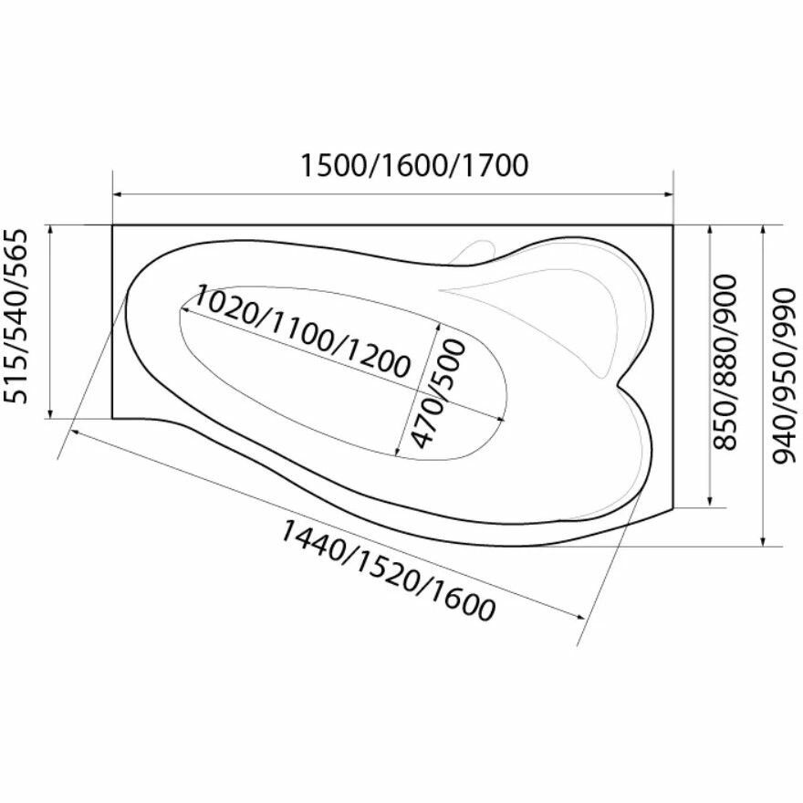 Купить Ванна акриловая асимметричная 1MarKa Gracia R 1500х900 белый (01гр1590п)