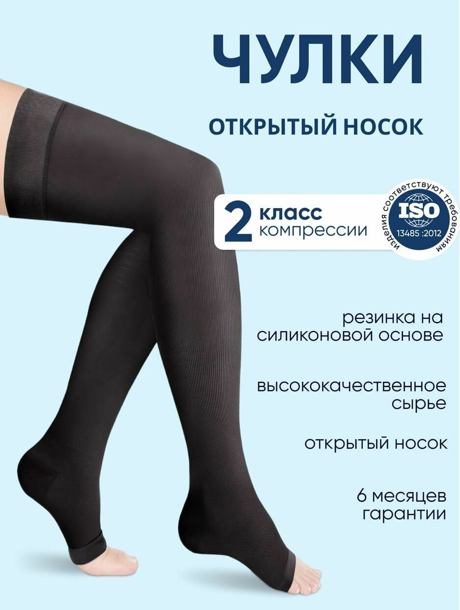 Чулки 2 класса компрессии с открытым носком (стандартное бедро, черные) ID-310 "Idealista", длина изделия Normal 62-71 см, размер L