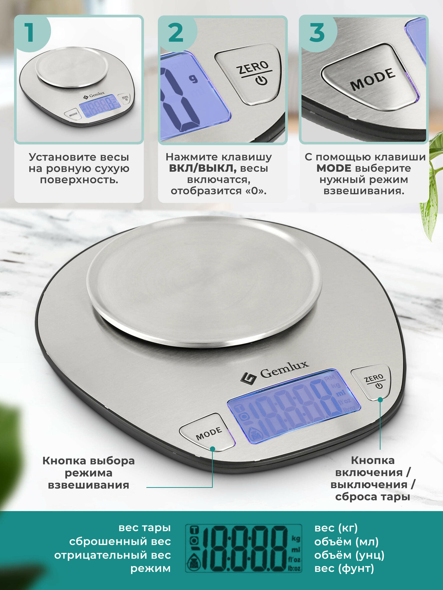 Весы кухонные "Gemlux" GL-KS5SB с чашей интересное: