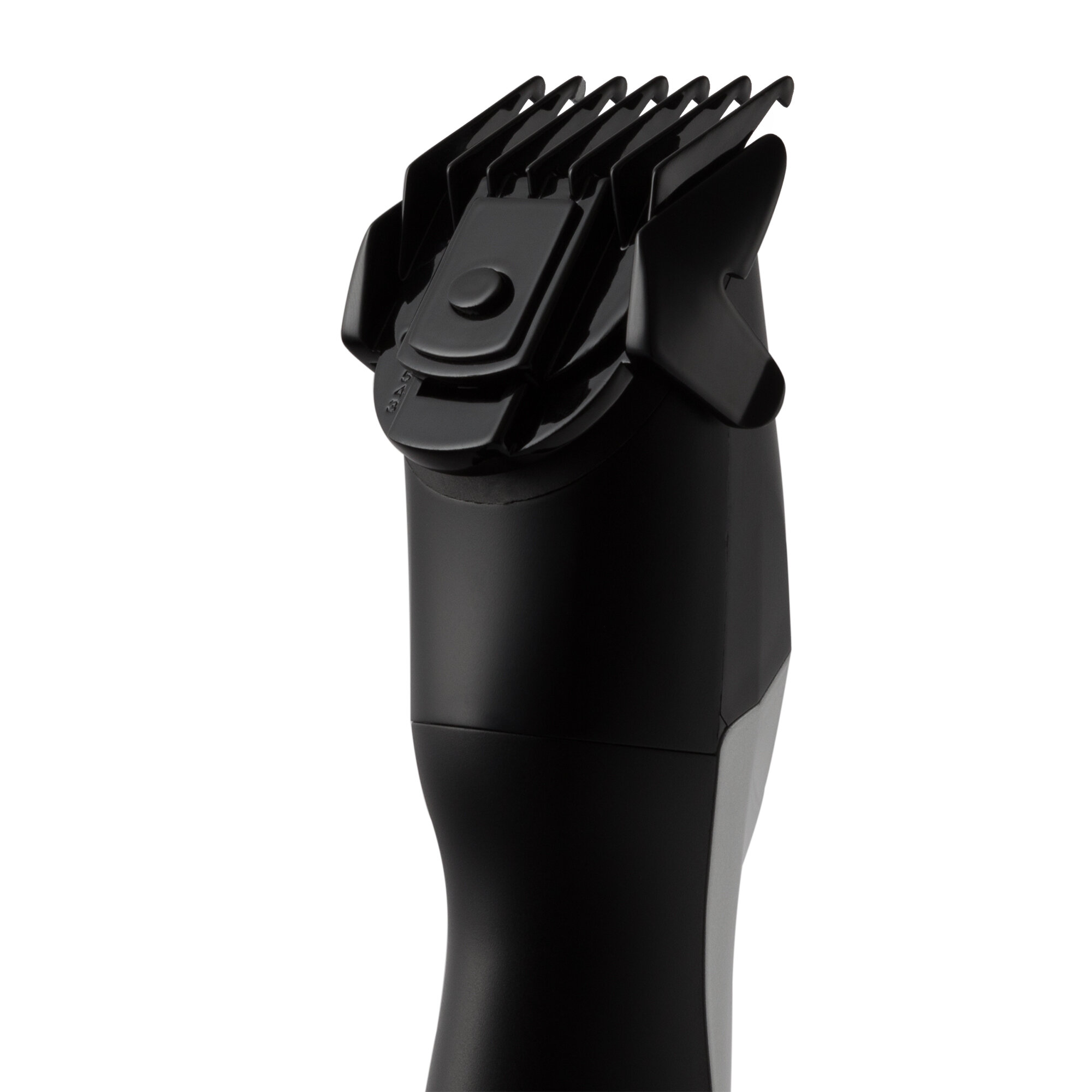 не ранит кожу при пендикулярном расположении к телу, насадки легко переставлять и порадовало их разнообразие, маленькую насадку можно регулировать по высоте, срезает волосы как "по маслу" |
