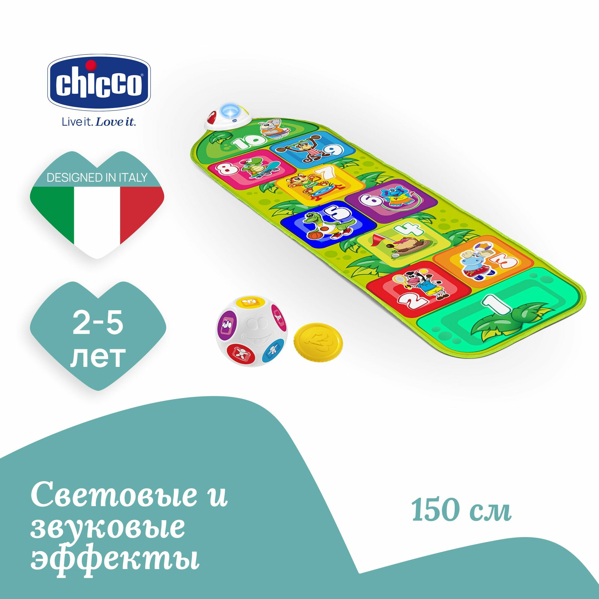 Игрушка детский музыкальный интерактивный игровой коврик для подвижных игр Chicco / Чикко "Классики"