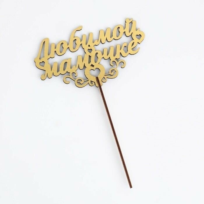 Купить Топпер деревянный "Любимой мамочке" золотой Дарим Красиво 14,3х8,2 см