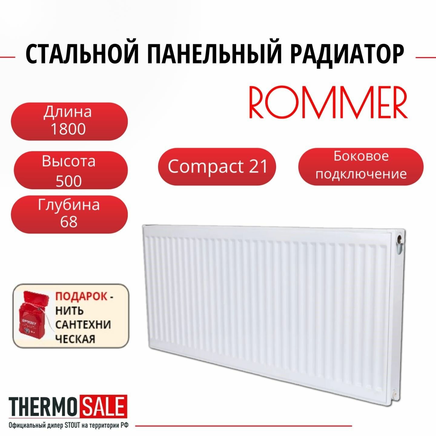 Радиатор стальной панельный ROMMER 500х700 боковое подключение Compact 21/500/700 Нить сантехническая