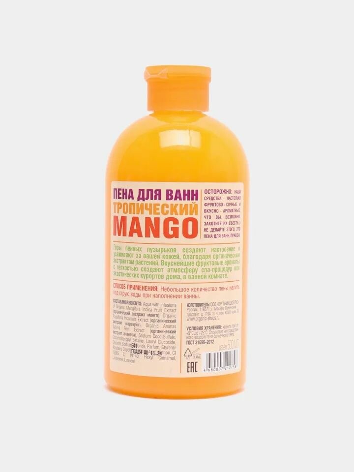 Купить Organic shop Пена для ванн "Тропический mango", 500 мл