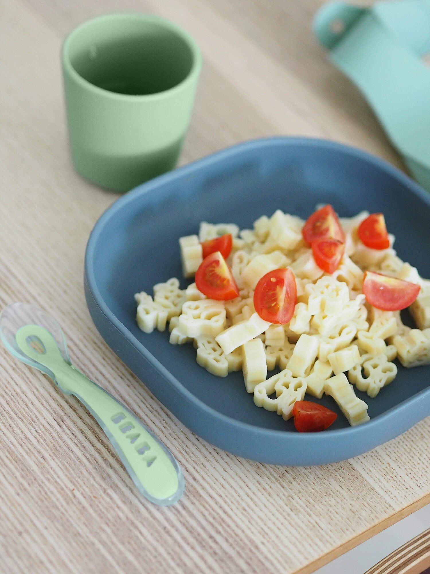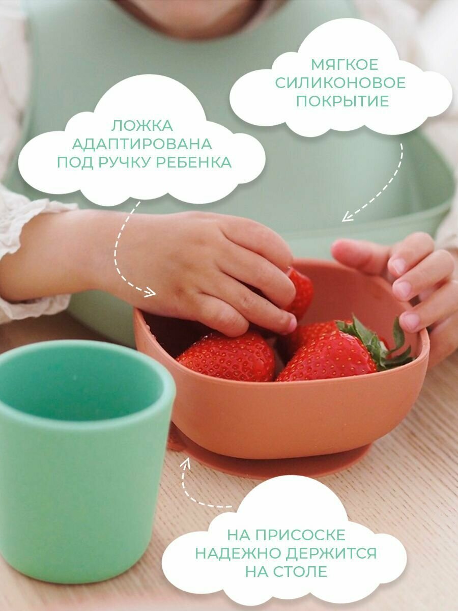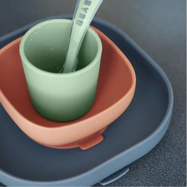 Набор силиконовой детской посуды BEABA: 2 тарелки на присоске, стакан силиконовый, ложка детская для кормления и прикорма