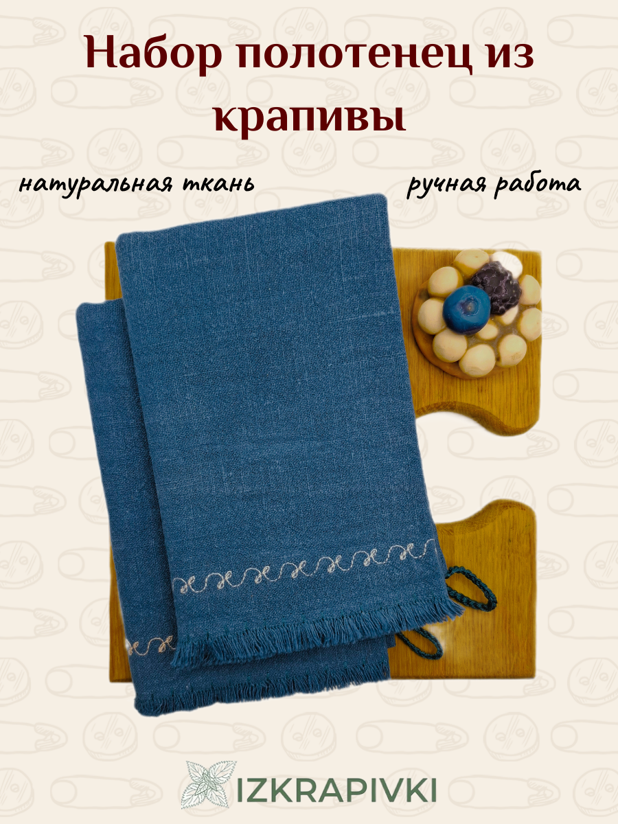 Набор кухонных полотенец IZKRAPIVKI 45*70 см, 100% крапива, синий