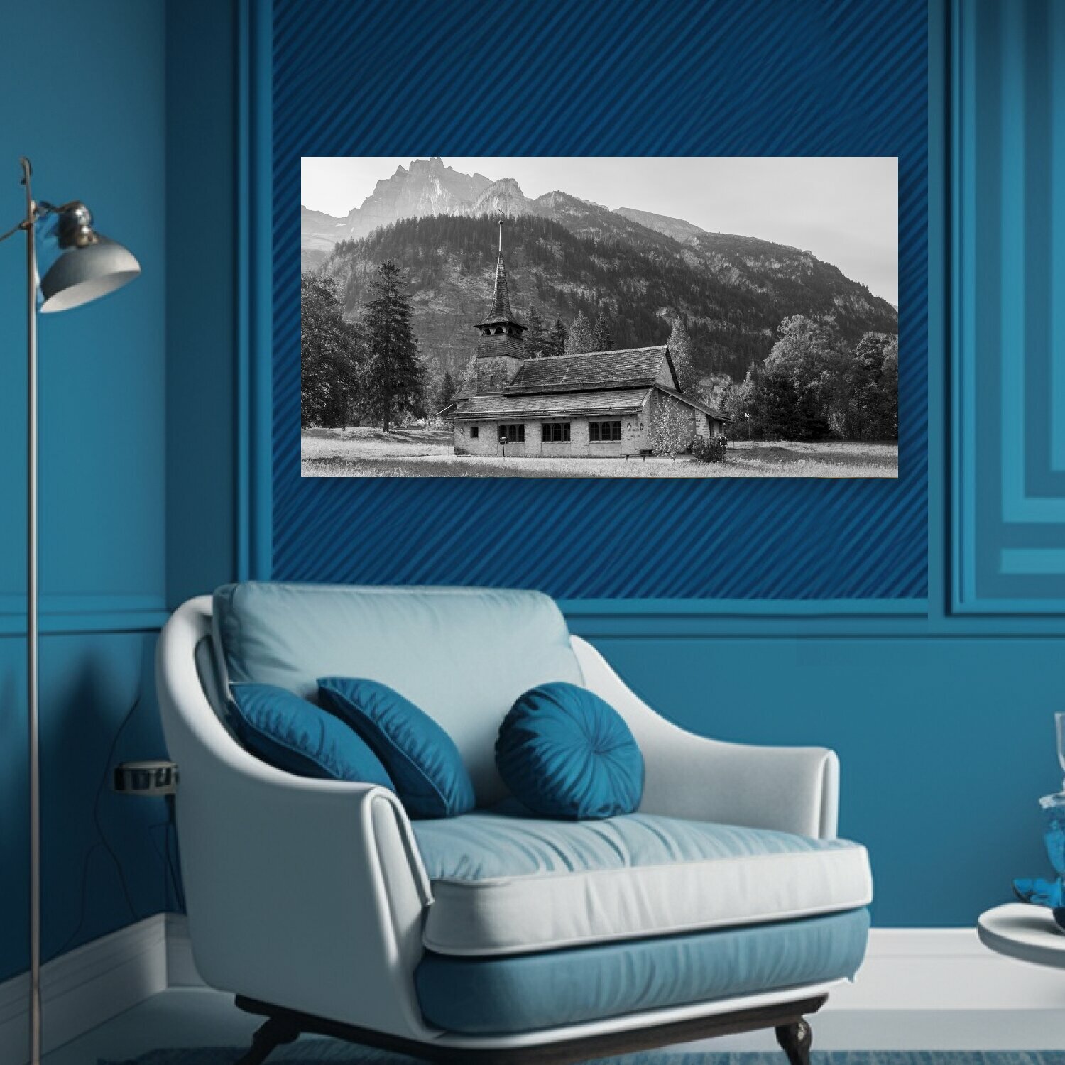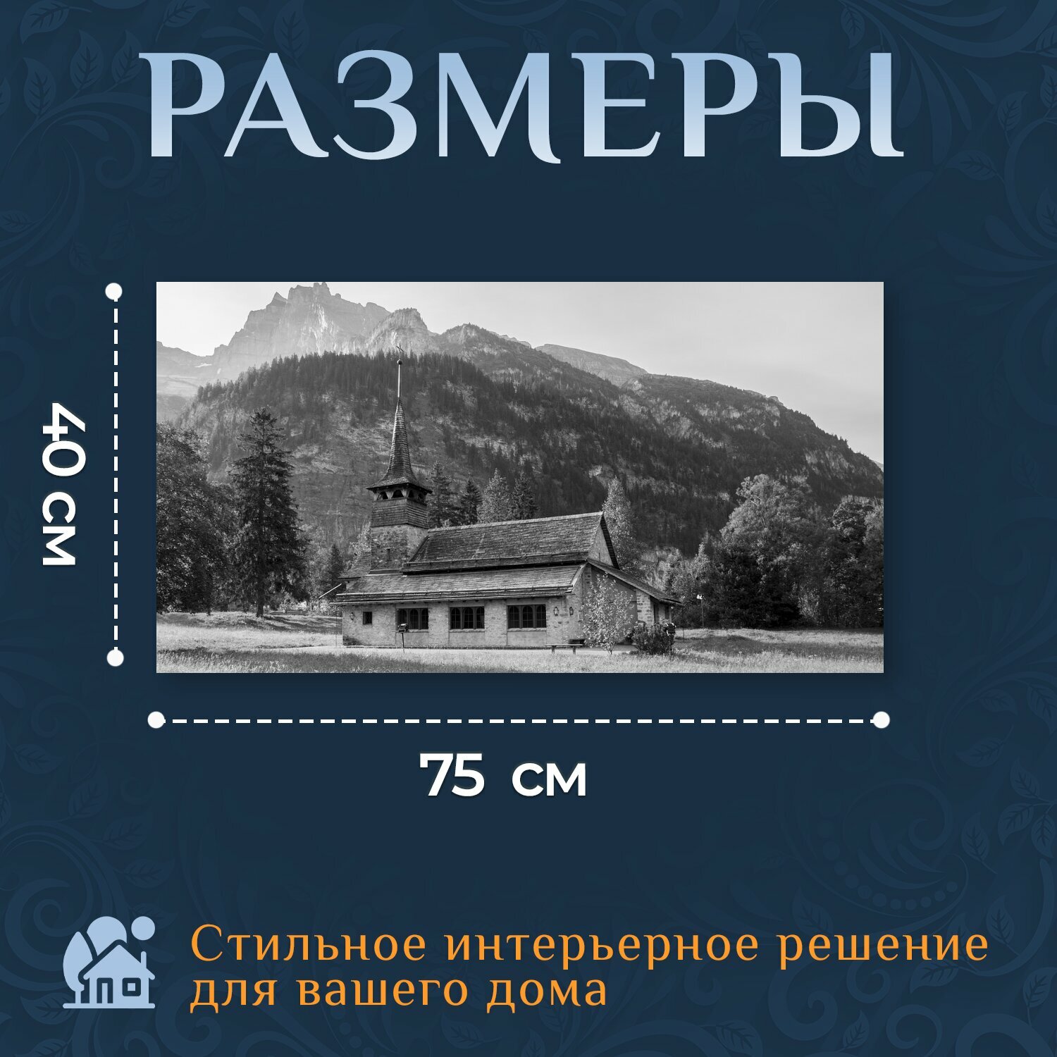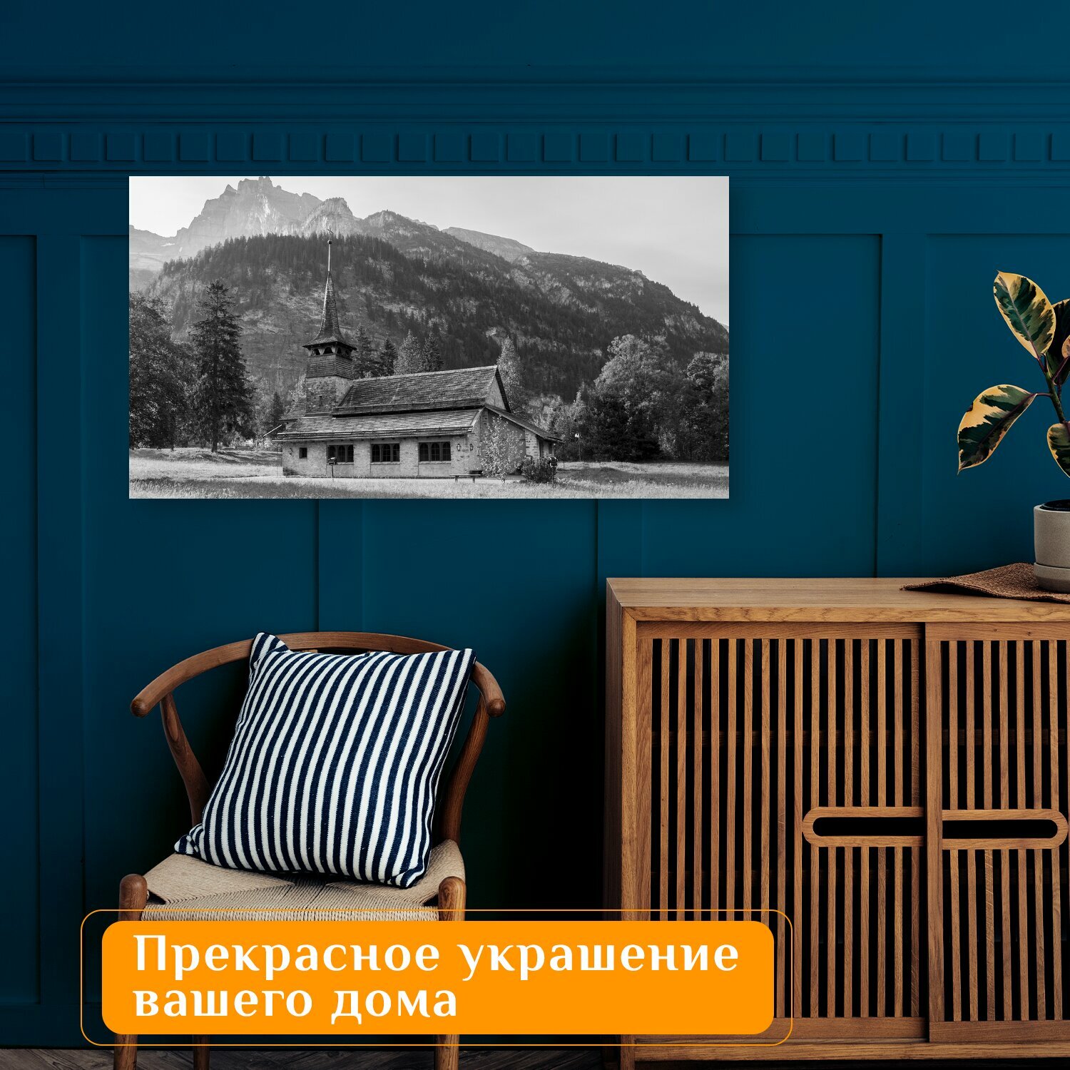 Картина на холсте "Церковь, горы, часовня" на подрамнике 75х40 см. для интерьера интересное: